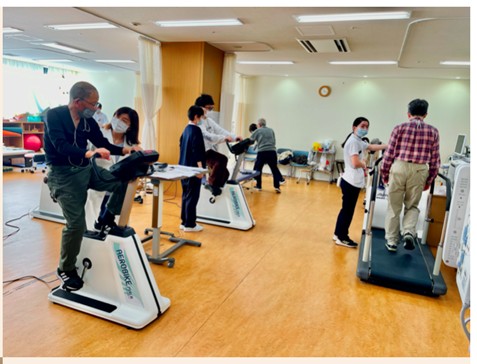 心臓リハビリテーションは、心臓病の患者さんが体力を回復し、自信を取り戻して、快適な家庭生活や社会生活に復帰することを目的としたプログラムです。さらに、生涯にわたり再発や再入院を防ぐことも目指しています。このプログラムには、医師、理学療法士、看護師、薬剤師、管理栄養士など、多くの専門職が関わります。心肺運動負荷試験の結果をもとに、患者さん一人ひとりの状態に合わせた最適な運動処方を行い、入院中から退院後、さらには維持期まで継続してサポートします。また、仕事と治療の両立支援にも対応しております。